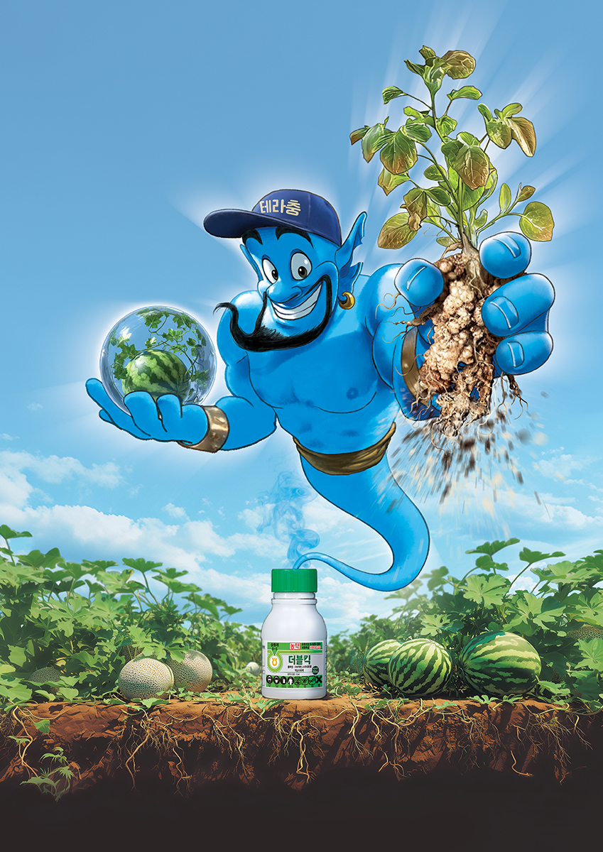 해충·잡초 제거 콘셉트를 생동감 넘치는 장면으로 표현했습니다.